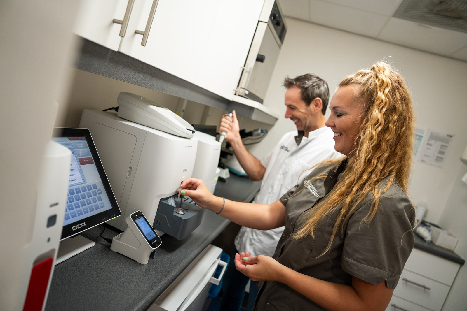 Dierenkliniek Het Liesvelt heeft een uitgebreid in-huis-laboratorium. We maken gebruik van continu up-to-date apparatuur van Idexx voor zowel bloed als urine analyse. In geval van spoedpatiënten hebben we snel een uitslag om direct de juiste vervolgstappen te ondernemen. Naast de apparatuur om bloed en urine te onderzoeken, kunnen we ontlasting en weefsel onderzoeken op afwijkende cellen of organismen door middel van microscopisch onderzoek. Wanneer er een heel specifiek onderzoek wordt gevraagd op welk gebied dan ook, kunnen we het doorsturen naar het externe laboratorium van Idexx. De uitslag is dan in de meeste gevallen binnen één of enkele dagen beschikbaar.